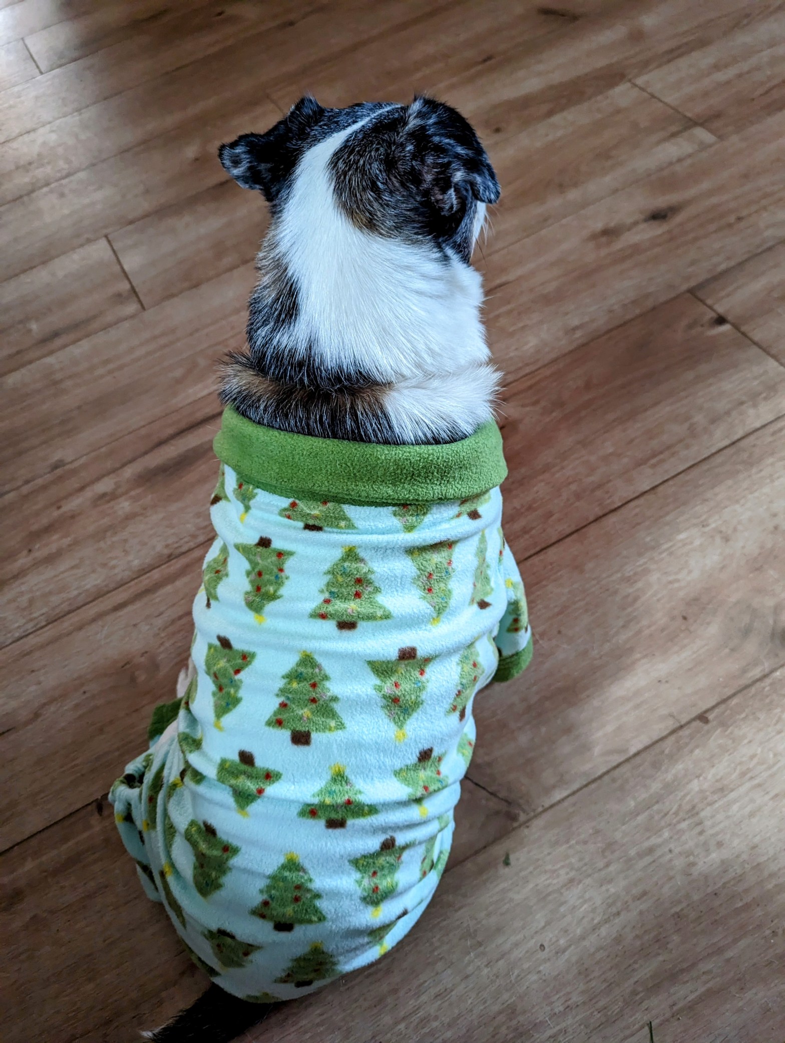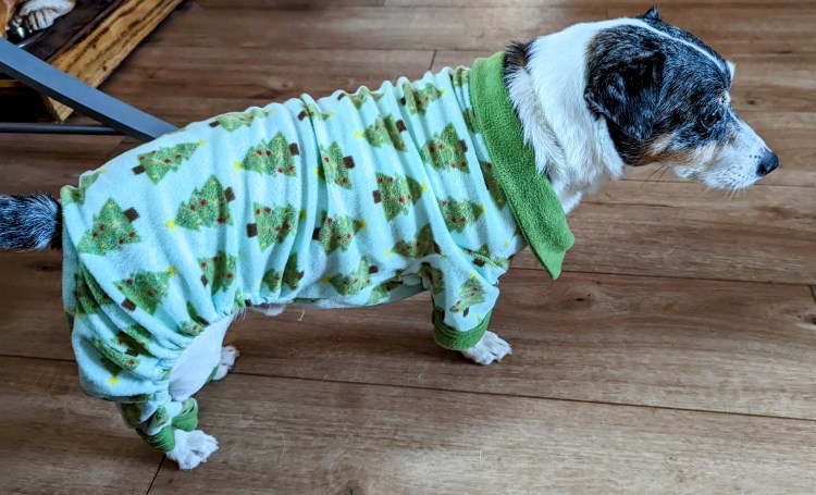 For the right number of snacks, Bruce will wear anything. Gidget is staying out of the situation for fear of having to wear an outfit. She is not fond of doggie clothes unless it’s her coat to go outside on cold days.