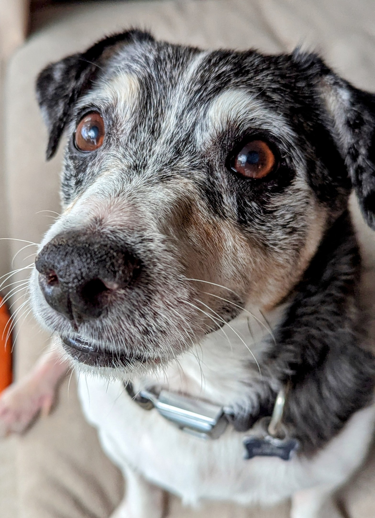 Now that he’s back to his happy, healthy self, Bruce will be snacking on carrots and chasing the ball to his heart’s content. He has returned to his post in the front window to resume his daily harassment of squirrels and delivery drivers.