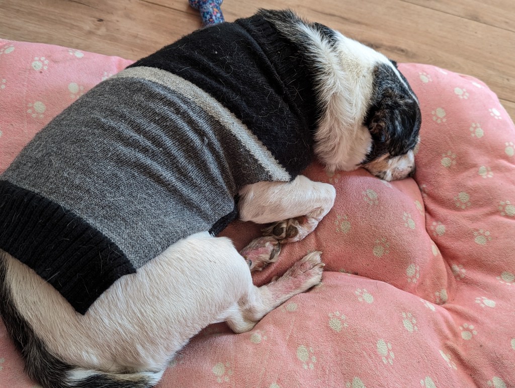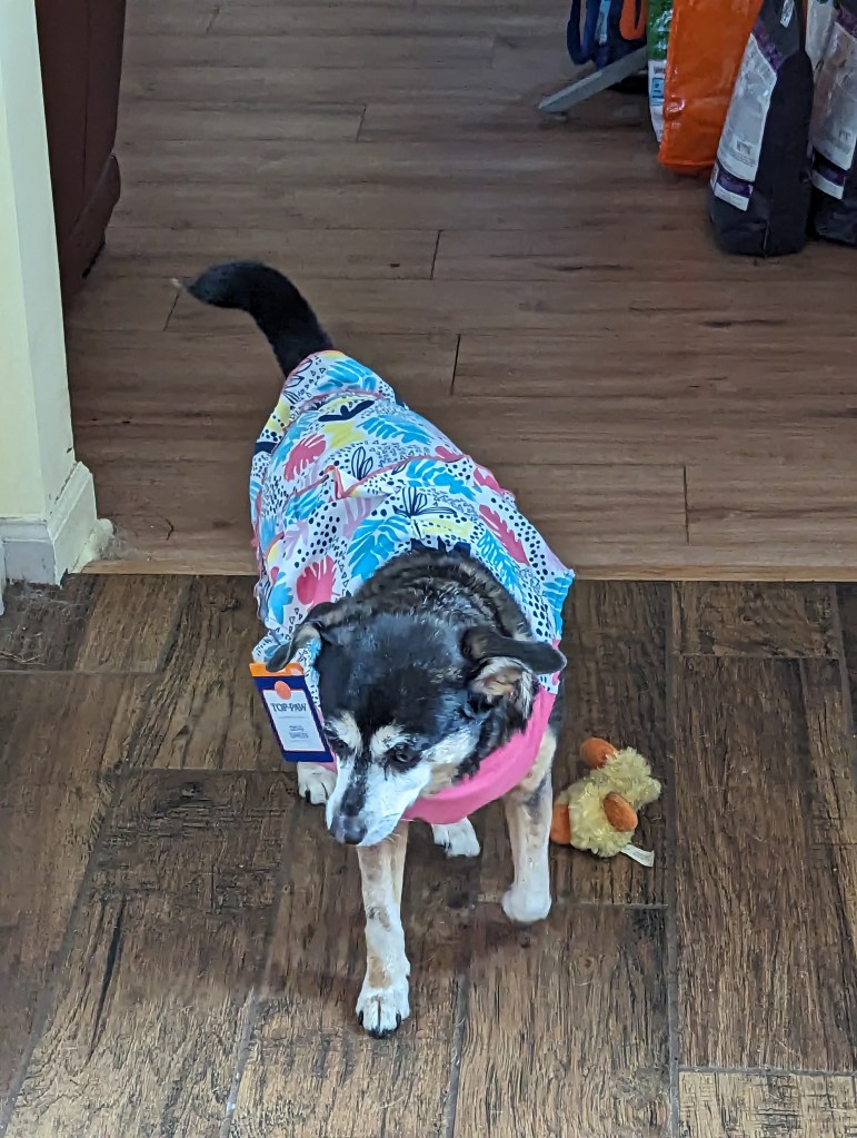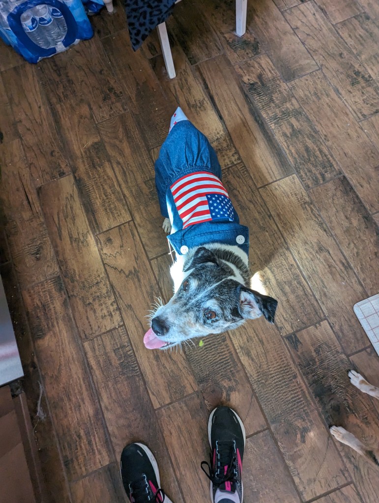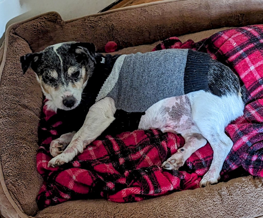 It’s getting cold here in Michigan, so I’ve dug their coats and sweaters out of the closet. Enjoy today’s collage of Gidget McFidget and Bruce Wayne in various outfits. Please ignore my less than spotless floors. Most dog people know that housekeeping with dogs is a losing battle.